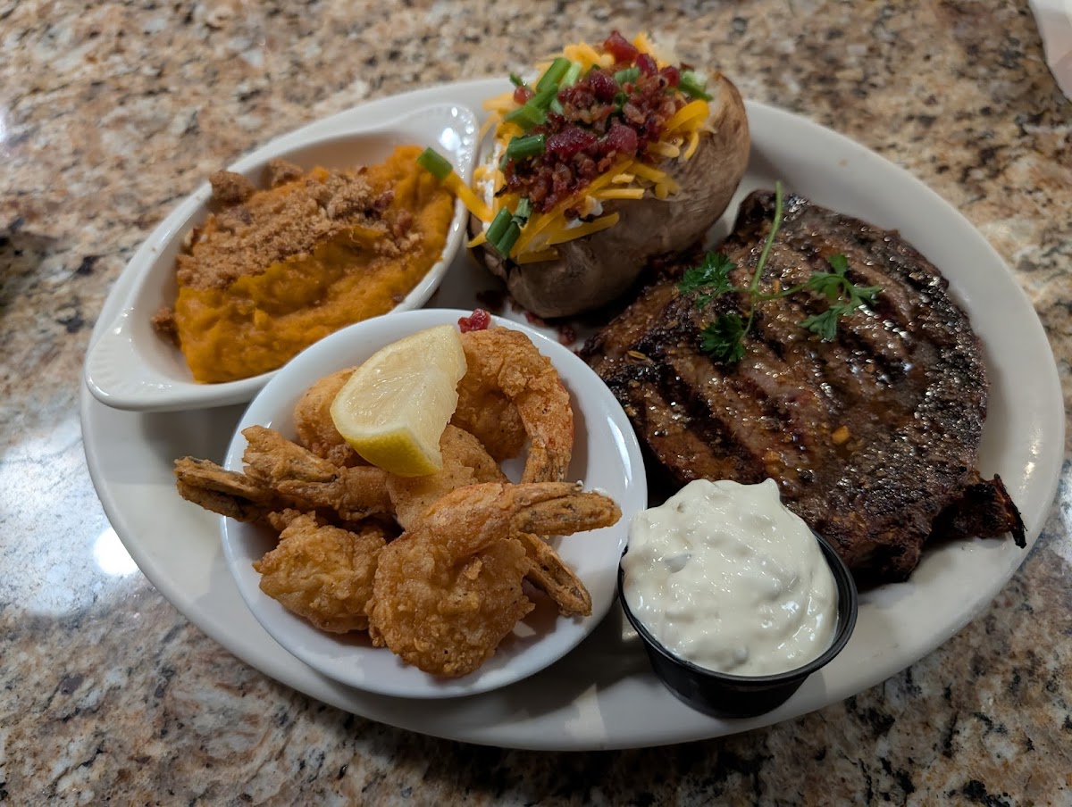 Everything we ordered was absolutely perfect. I had the ribeye cooked rare, a loaded baked potato, and macaroni and cheese, and every bite was outstanding. The steak was so flavorful and tender that I honestly wish I knew what they use in their rub. The service was excellent too. Our waiter was attentive and friendly, and even the managers stopped by to check on us. It’s rare these days to find a place that nails both food and service like this. We’ll definitely be going back again!