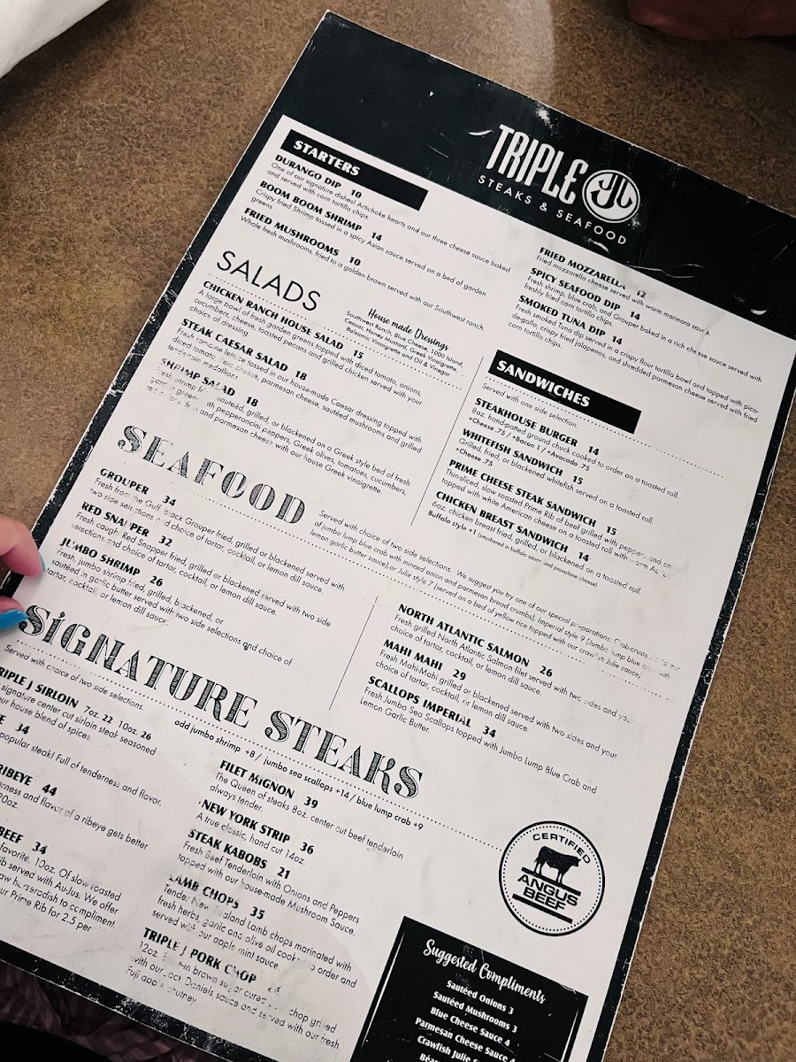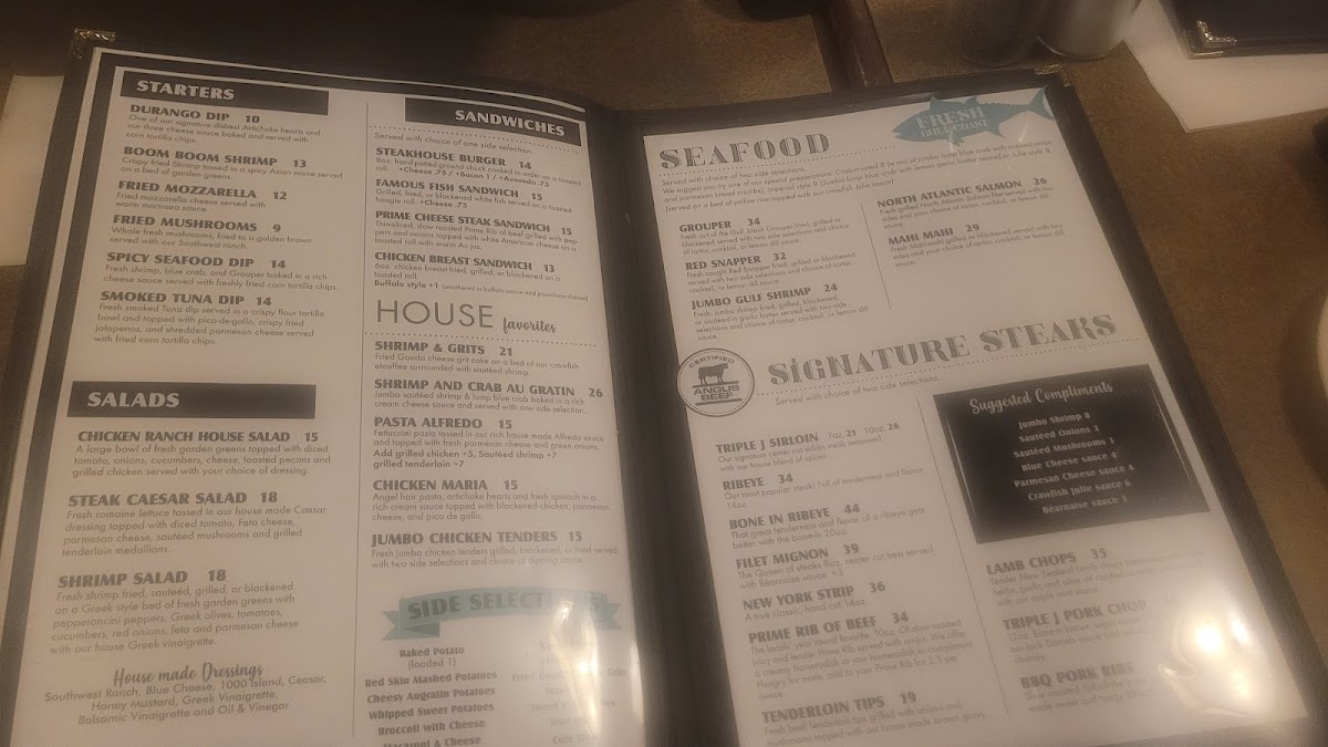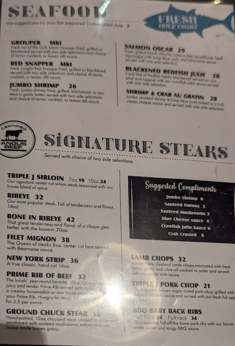 Triple J Steakhouse Menu